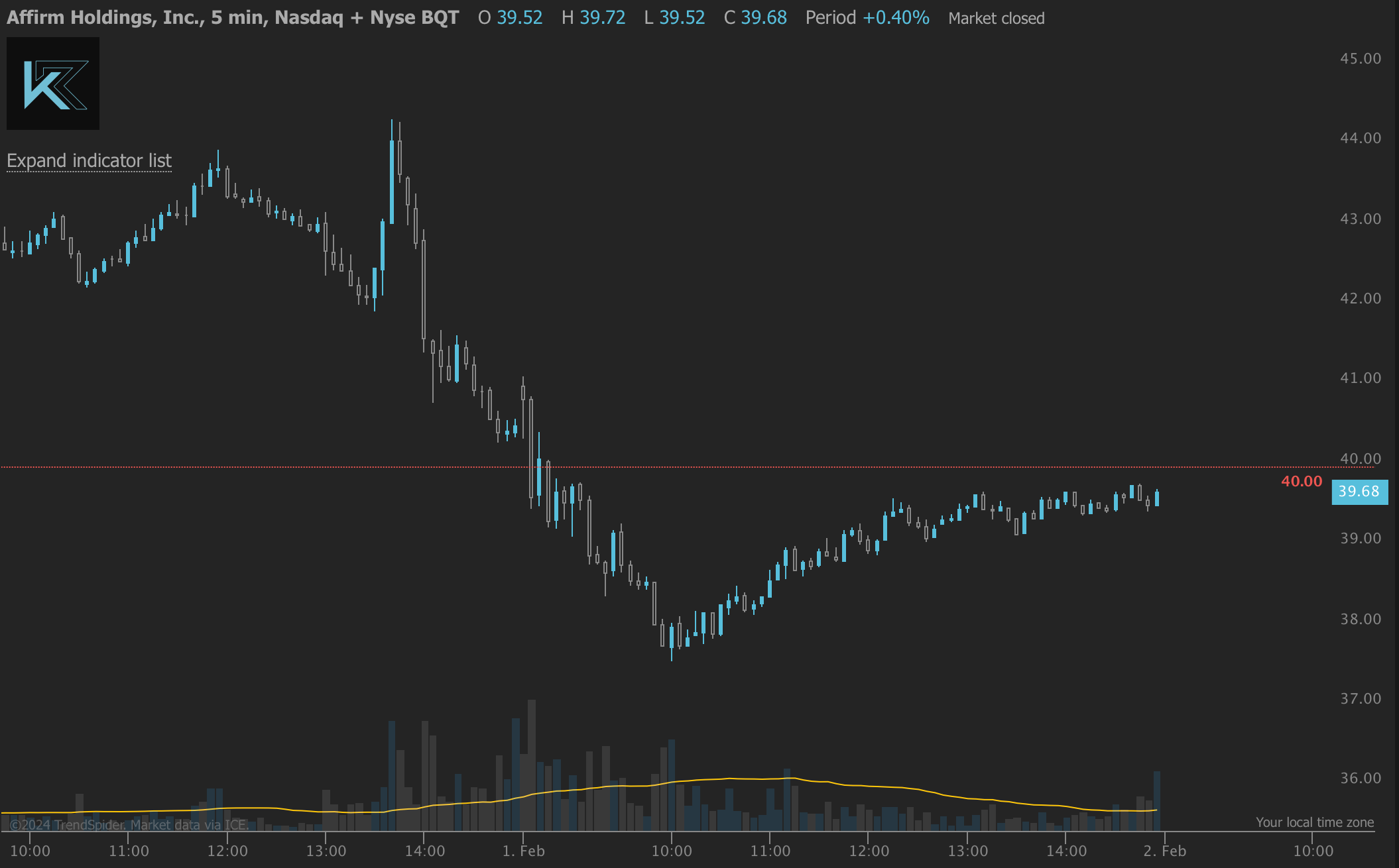 AFRM - Another idea that paid today. this was mentioned on Sunday and we have been waiting to take action. Below $40 and dropped almost $3 instantly.