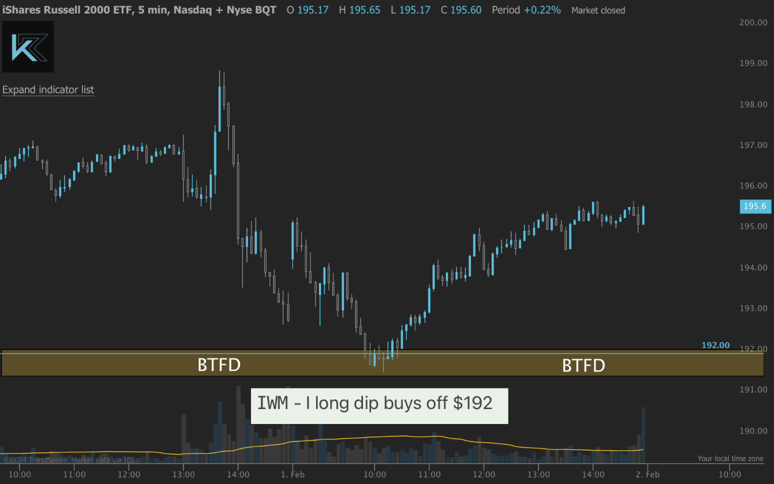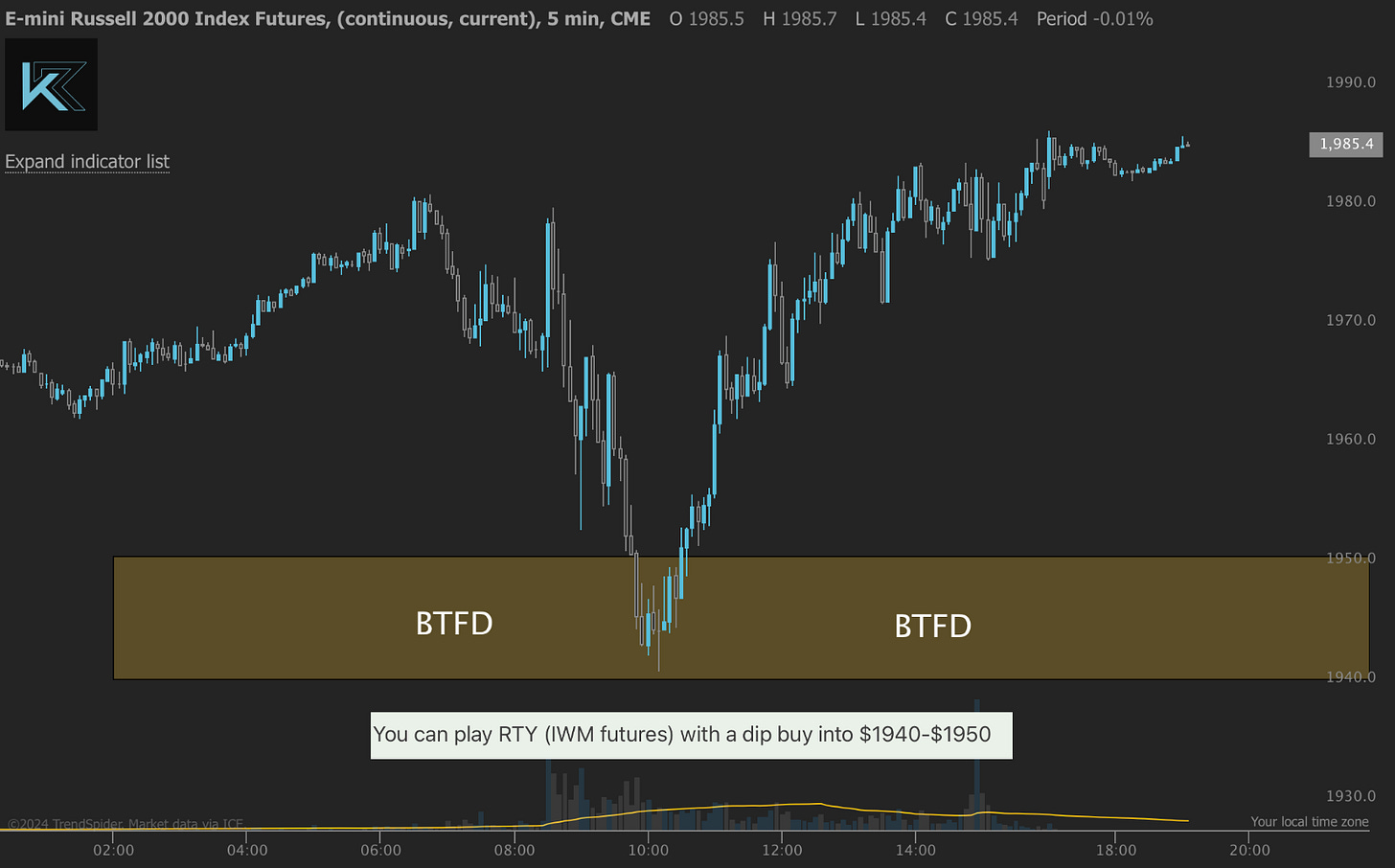 We were preparing to buy a dip today for a bullish move and that’s exactly what happened. While we didn’t hit our NQ_F level, we did hit our RTY_F level and is PAID! RTY_F is now up over 40pts - or $2,000/contract. See below.